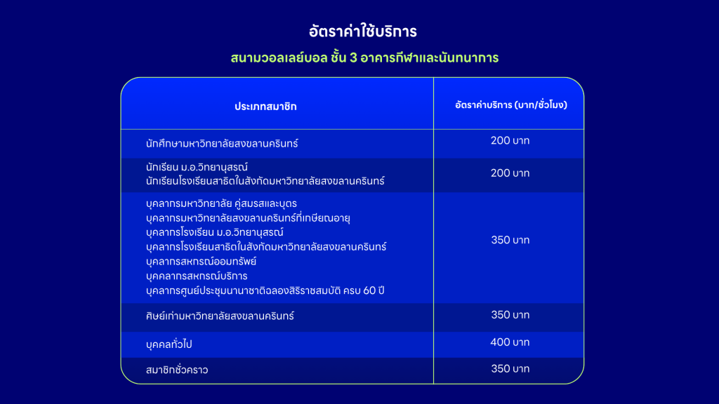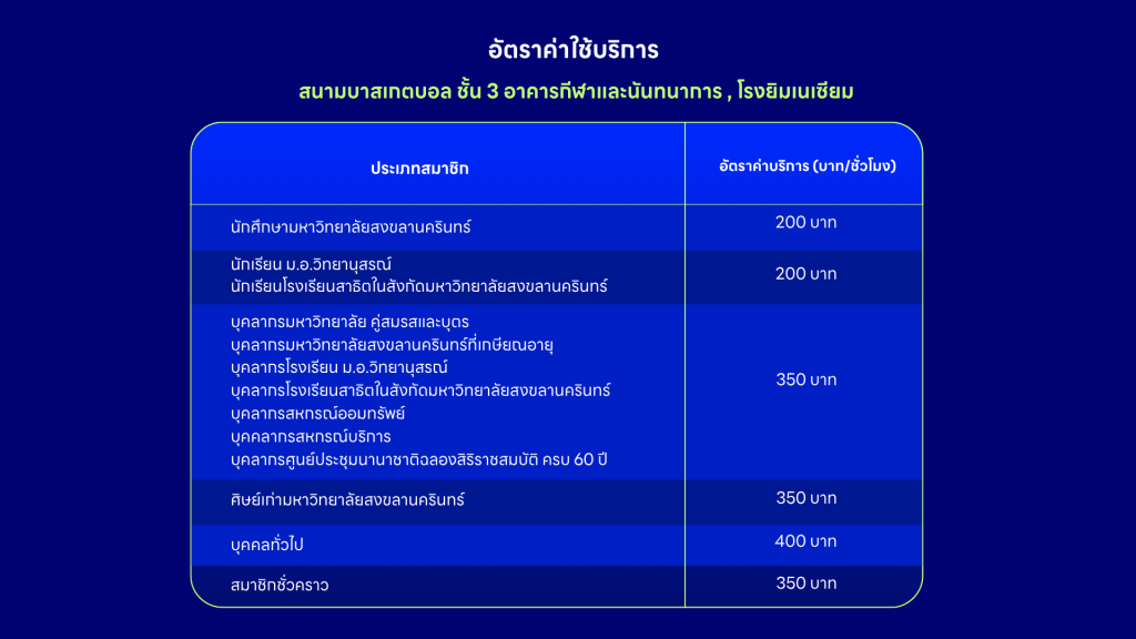 *ปิดให้บริการเฉพาะวันที่มหาวิทยาลัยประกาศให้ปิดสนามแบดมินตันเท่านั้น