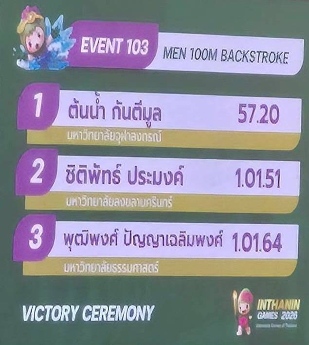 🏊♂️กีฬาว่ายน้ำ ประเภทกรรเชียง 100 เมตรชาย
